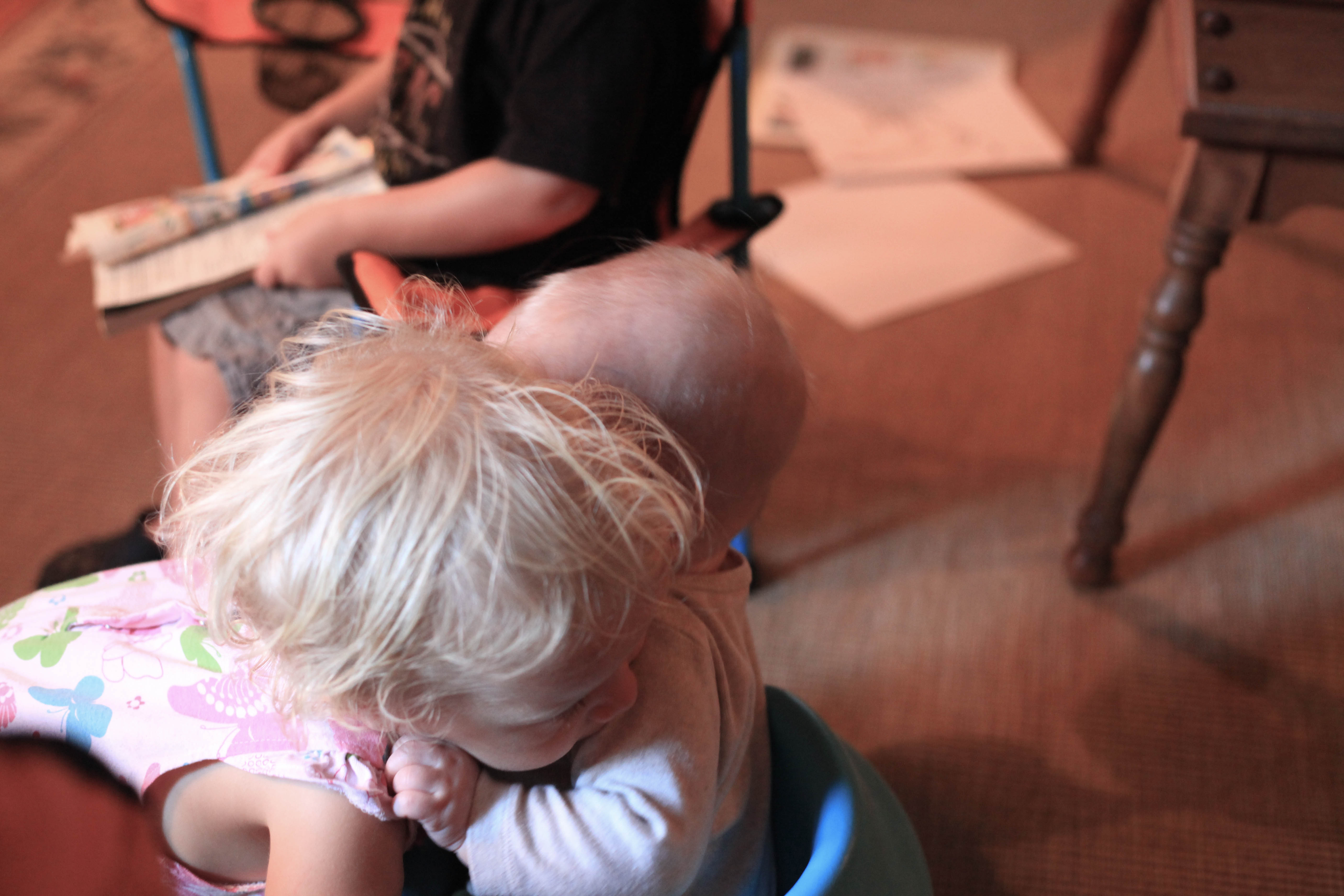 And when you were not very happy about watching Elmo….Juliet tried to give you a hug to cheer you up.