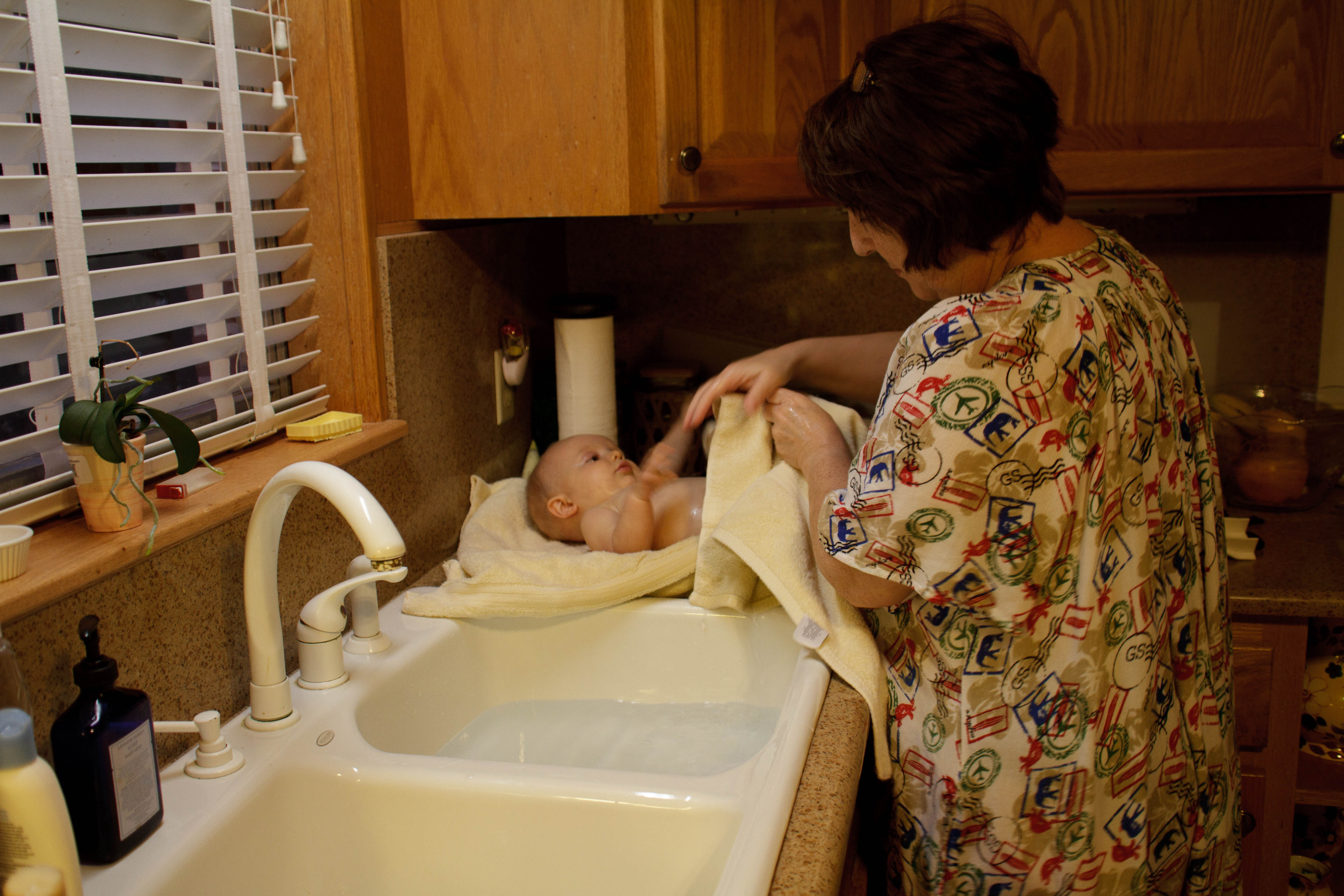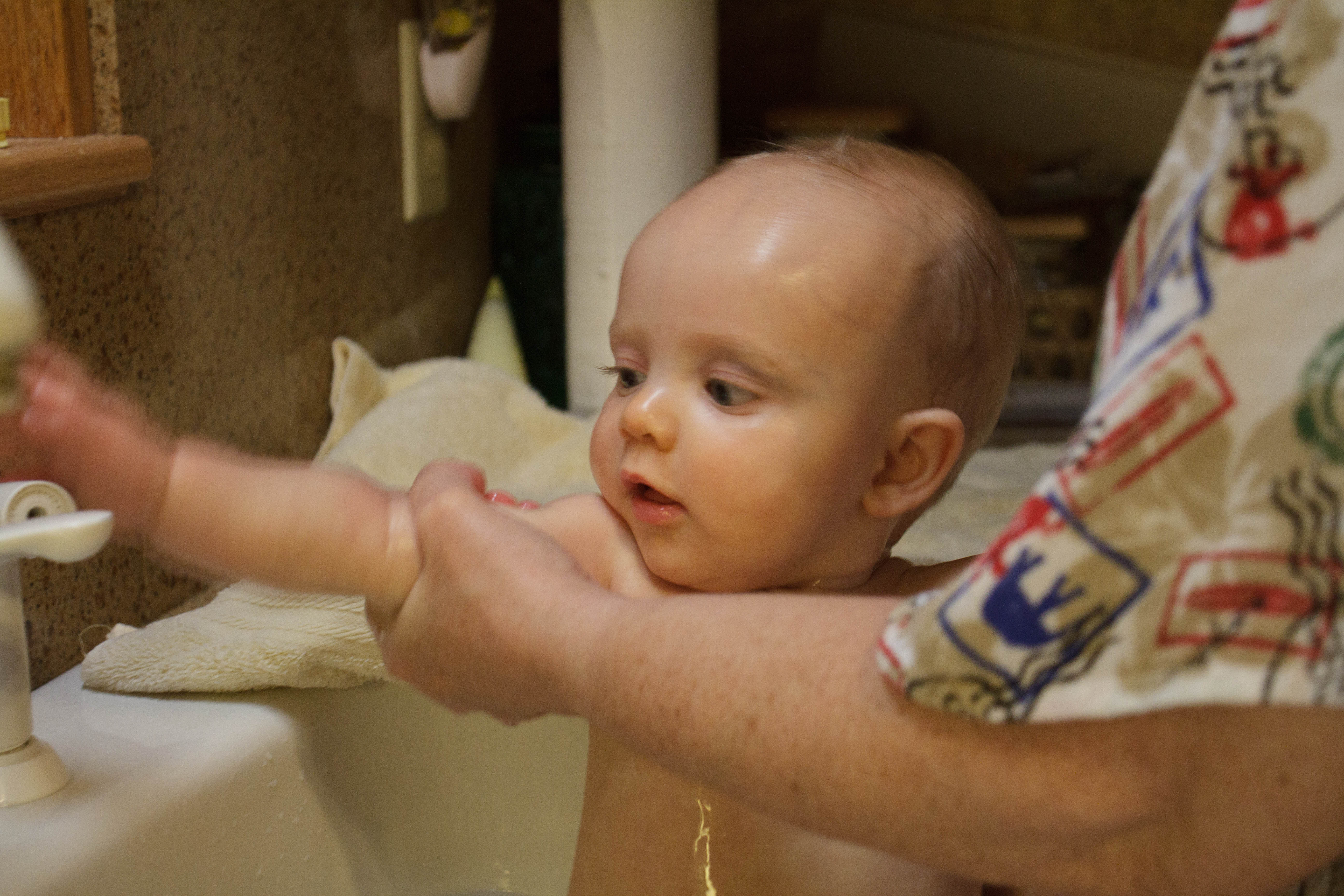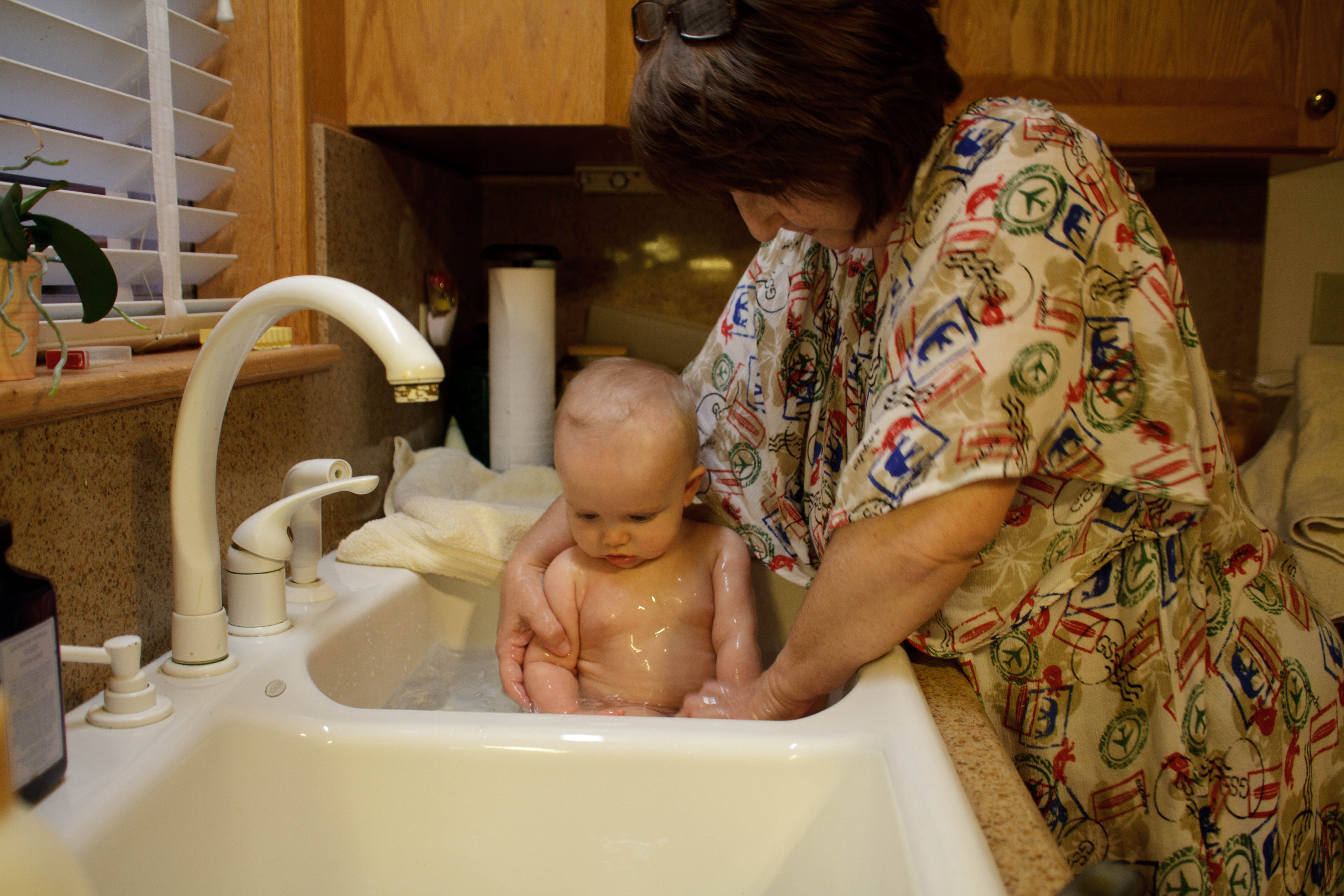 You love your sink bath by Aunt Linda. I think you have almost outgrown them….