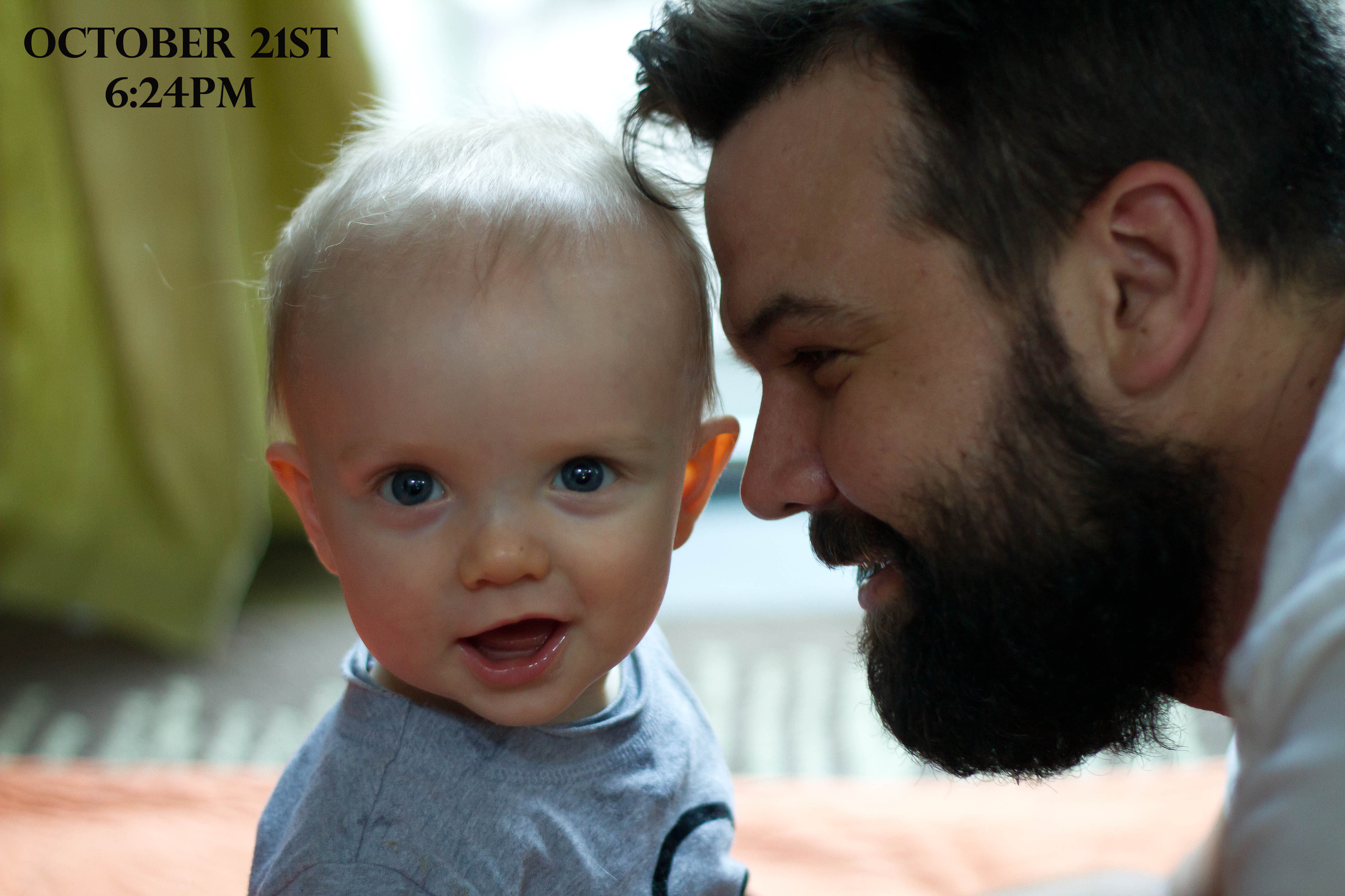 You’re Daddy loves playing with you on the floor. He took you to the doctor today and you got two shots. He said you did really good and they weighed you, you are 17.2lbs. You have two blue camo bandaids on your legs. We’re kind of wondering if the side effects of the shots are hysterical laughter….because you have been silly and laughing all night.