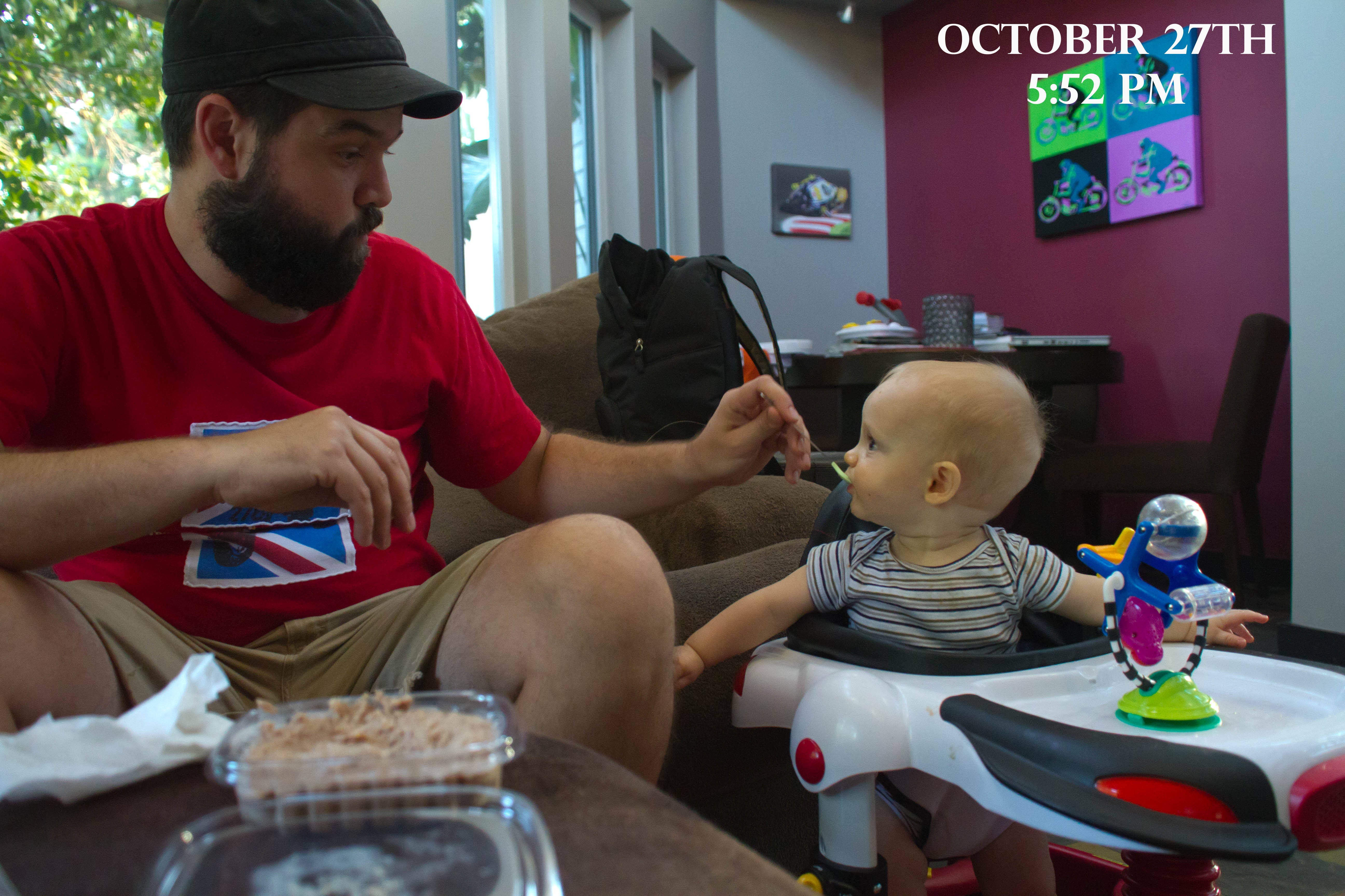 You officially love hummus and this isn’t plain hummus, this is really garlicky, kalamata olive hummus. In fact, the next night Daddy tried to have a snack and you cried because he didn’t have hummus. When he got the hummus out and gave you some, you smiled and laughed. You’re a little stinker!