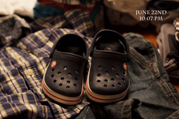 I distinctly remember folding your little clothes about 2 weeks before you were born and not even being able to fathom that you would be that small. I still have those same thoughts when I’m folding your clothes now and when I look at your little shoes. But at the same time I am very aware of just how big your clothes have gotten. You’re growing fast baby boy but I’m glad you’re still small…..and have cute shoes!