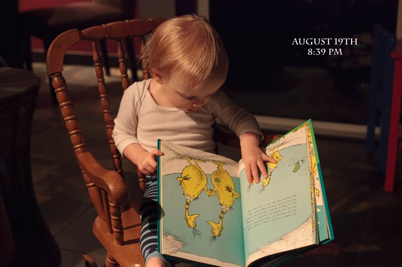 Photo.a.day 328 Posted on September 4, 2012 by cldencer PHOTO.A.DAY 328 I love how much you love reading. You will sit and flip through a book for a very impressive amount of time. You point at the pictures and seem to make up your own stories. I hope this love continues. Share this: Click to share on X (Opens in new window) X Click to share on Facebook (Opens in new window) Facebook Click to share on LinkedIn (Opens in new window) LinkedIn Click to email a link to a friend (Opens in new window) Email Click to share on Pinterest (Opens in new window) Pinterest Click to share on Tumblr (Opens in new window) Tumblr Like Loading... Related