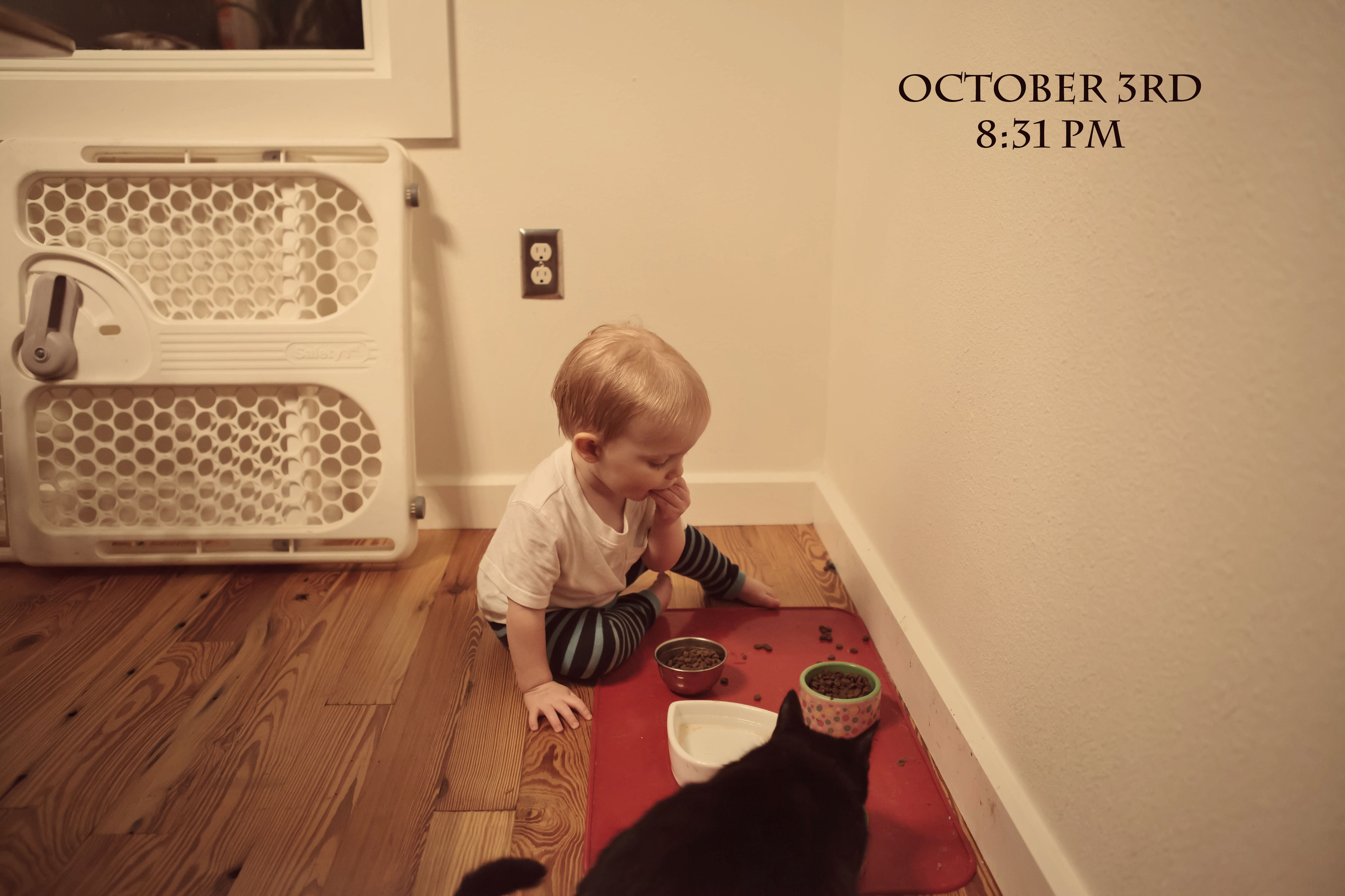 You are such a good helper. You help feed the cats and Sieben almost every night when we get home. Sometimes you spill the food and don’t quite make the dish. I love capturing sequences like this because you actually nibbled on a piece of cat food. I wish I had a video of it, however, because after you took the bite you said “mmmmmm”. That doesn’t say much about my cooking, does it? Ha!