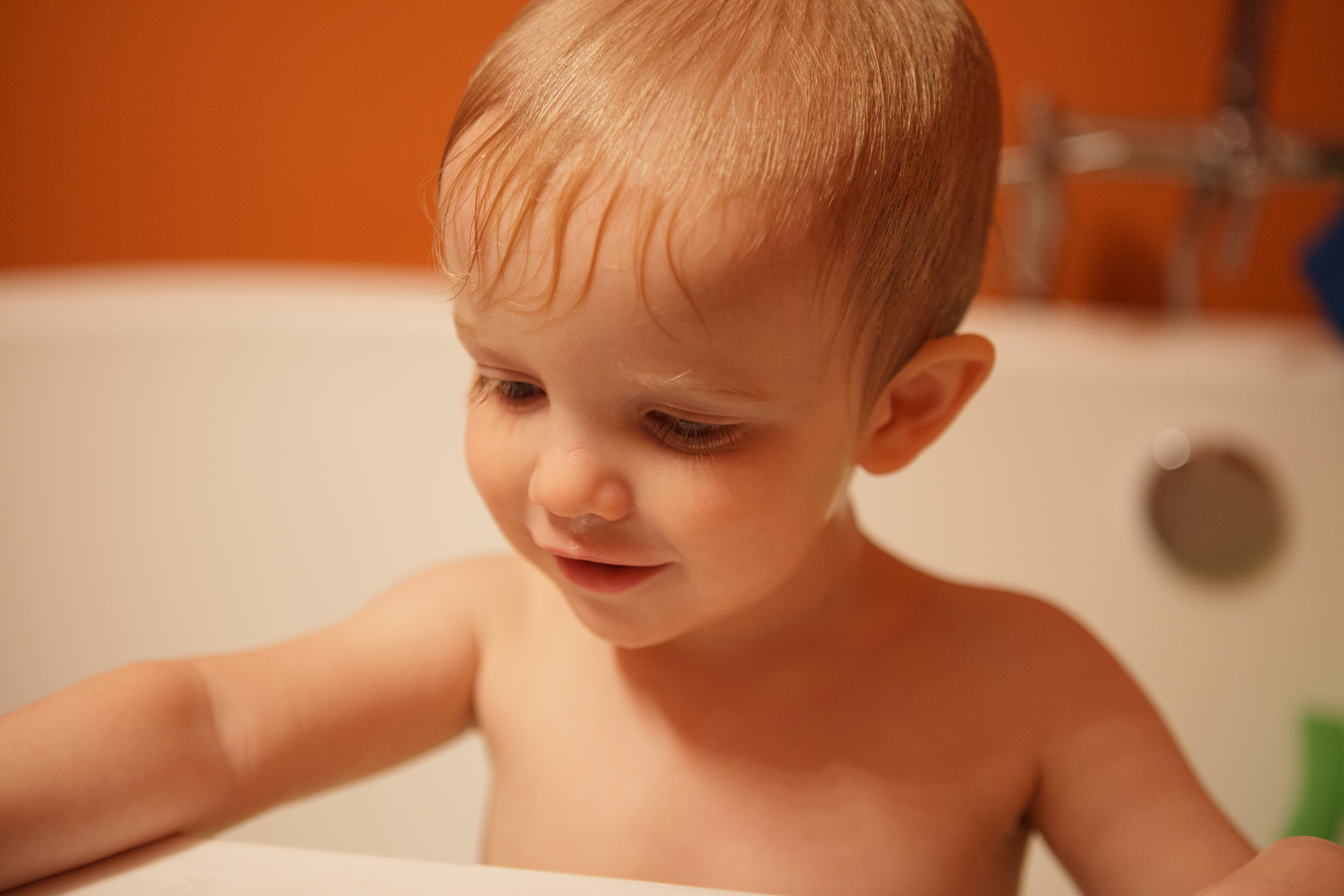 Tonight you decided to not wait for us to come into the bathroom. You decided that you were going to climb onto your stool and jump in. Well you were fully clothed and not very happy when you pretty much ended up face down. Luckily we don’t fill it up that high. You quickly got over it as you can see.