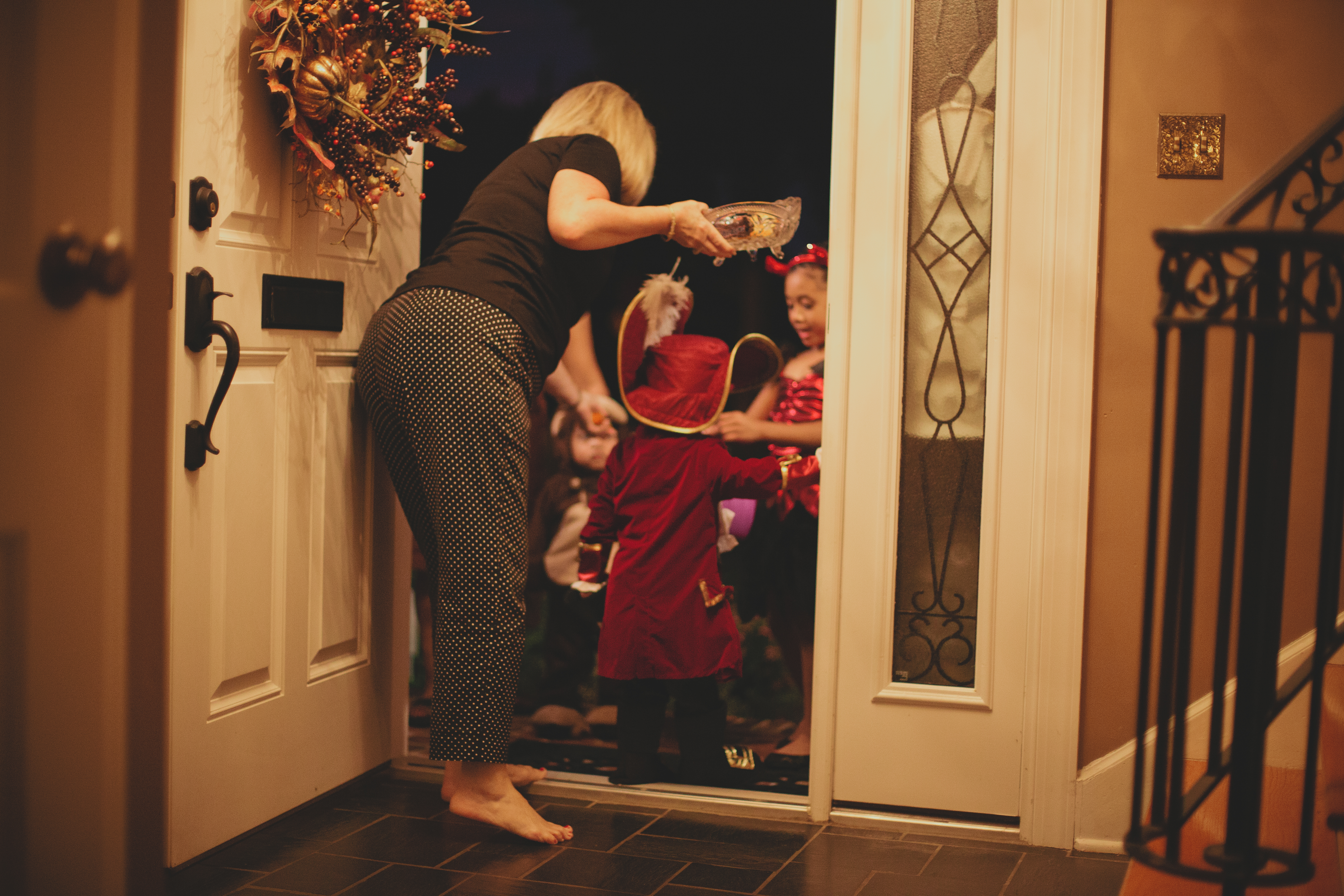You helped her give candy to trick or treaters. Might as well make ourselves useful.