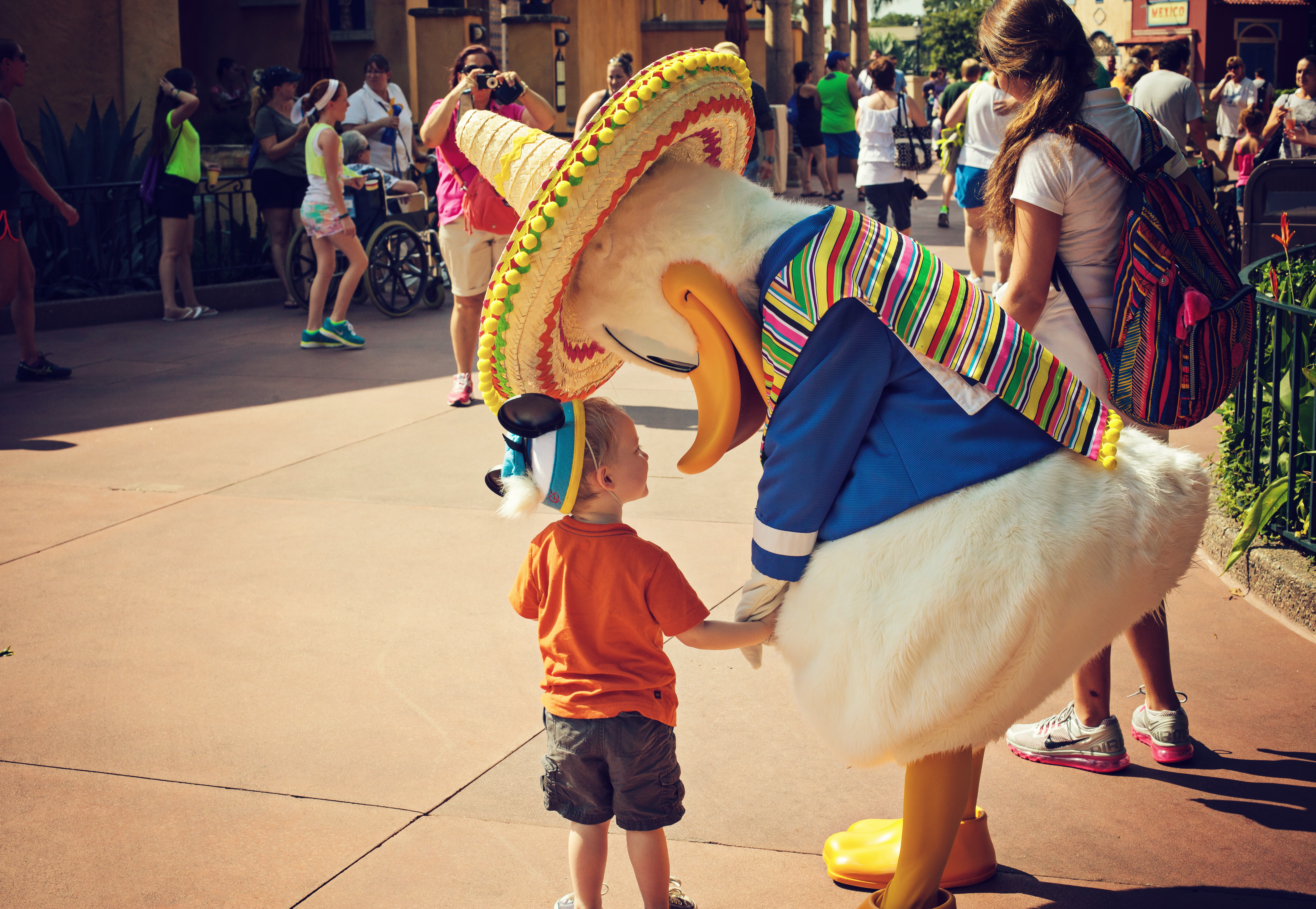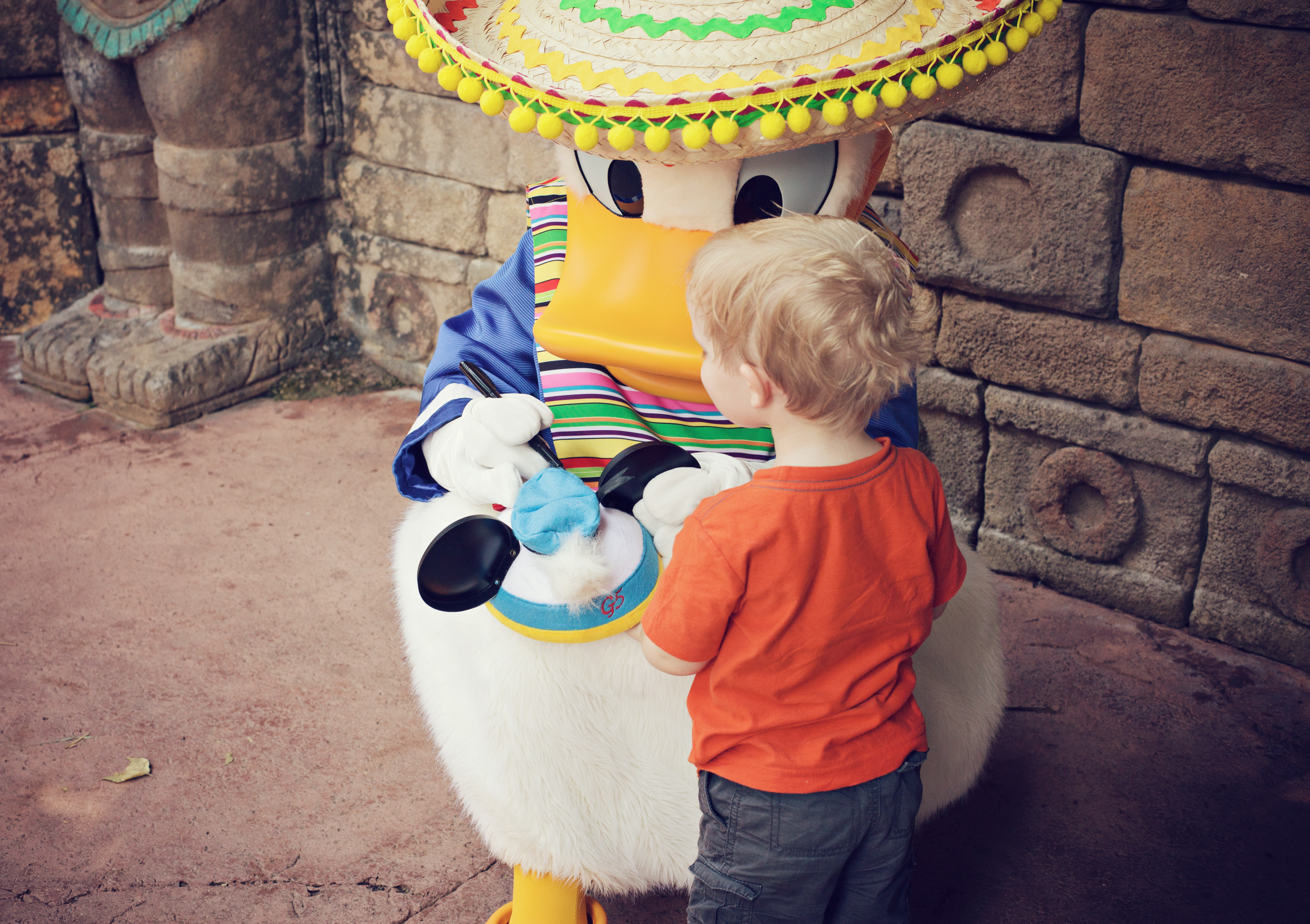 We visited Disney World for your third time this weekend. You’re pretty lucky you have parents that are Disney nuts! We took a long weekend and stayed at the Wilderness Lodge. We forgot your Mickey ears at home so we let you choose some new ears for this trip. You chose Donald ears. We got to meet Donald at Epcot!