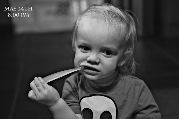 Well since you have bunches of teeth, I figured it was time for some teeth brushing. I demonstrated with my toothbrush and you picked up the concept pretty good. Well except when I told you to “brush” your teeth and then you tried to brush your hair. Whoops wrong brush. I’ll have to teach you that there are multiple meanings to the word brush.