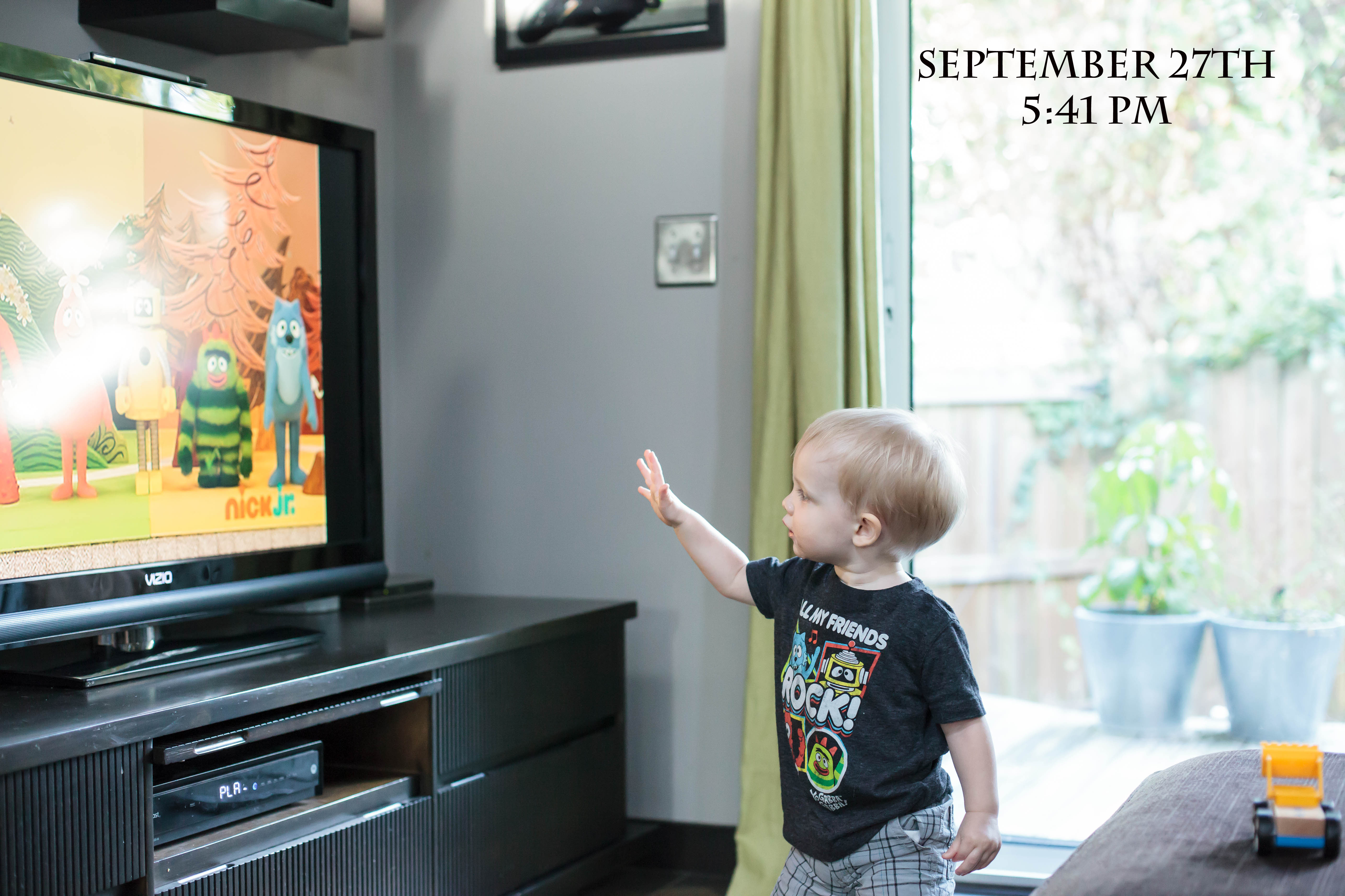 Well we decided that you should be a Yo Gabba Gabba character since that’s really the only show you watch and we figured that would mean that you would know who you were. Oh Plex….how fun how fun! You went to Mrs. Barbara’s house and thought the candy was a toy so you stacked them like blocks. You also think that it is ok to go into other people’s houses and explore. Not really the point of trick-r-treating but I’m sure you’ll learn.